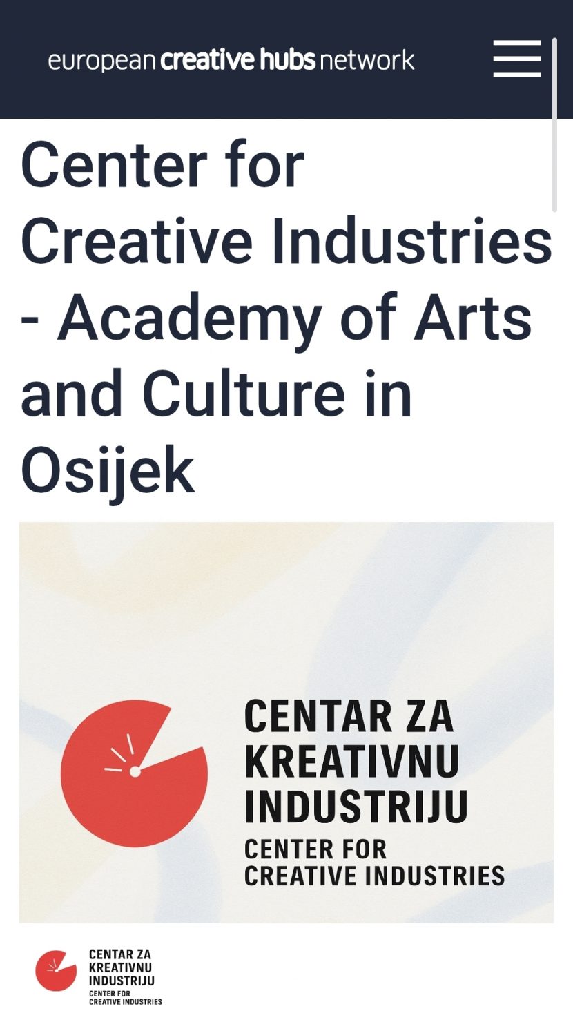 Centar za kreativnu industriju Akademije za umjetnost i kulturu u Osijeku službeno je postao dio European Creative Hubs Network – najveće europske mreže kreativnih hubova koja okuplja više od 400 organizacija iz cijele Europe.