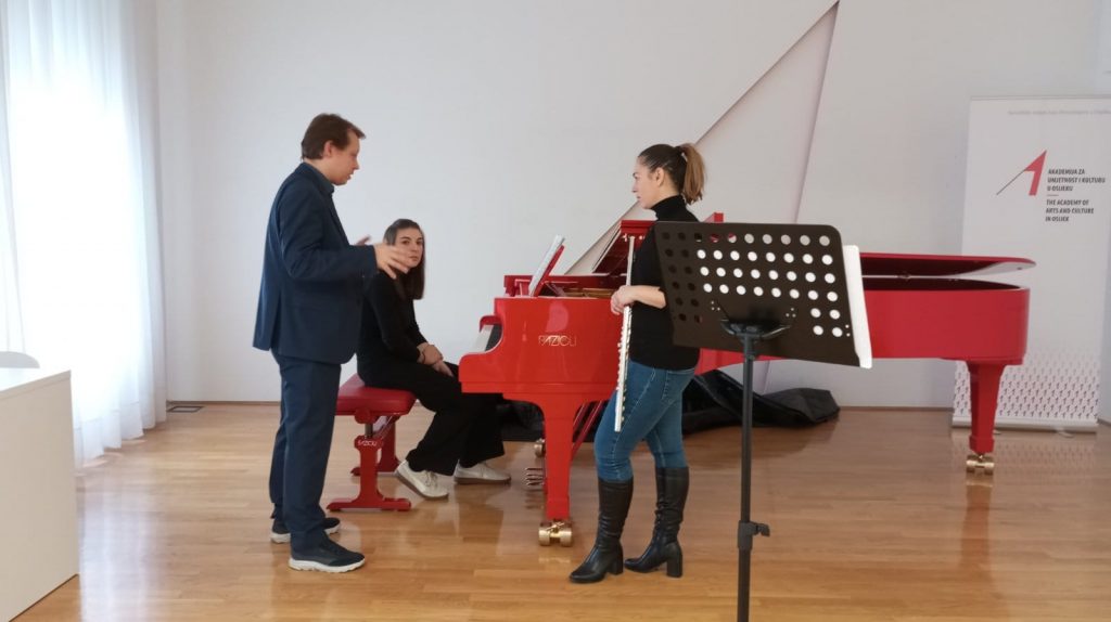 Naši studenti imali su priliku raditi s etabliranim pijanistom i profesorom mdw-a (Universität für Musik und darstellende Kunst Wien) u Beču, prof. Stefanom Stroissnigom, koji je kao gost u sklopu programa ERASMUS+ boravio na AUKOS-u. Majstorska radionica, održana 11. i 12. prosinca 2025. godine, otvorila je nova interpretativna pitanja i potaknula studente na dublje promišljanje vlastitog umjetničkog izraza.