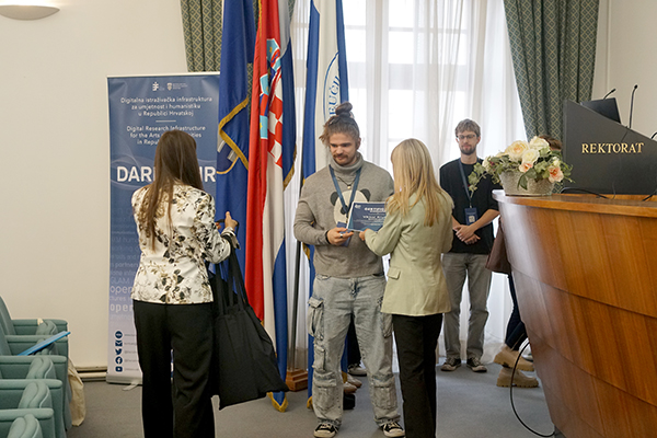 Nagrade su uručile dr. sc. Koraljka Kuzman Šlogar, nacionalna koordinatorica DARIAH-HR i dr. sc. Anamarija Žugić Borić, viša asistentica.
