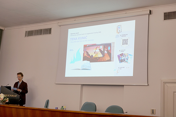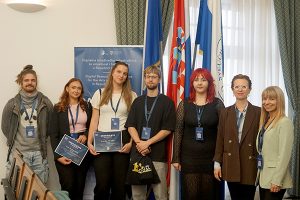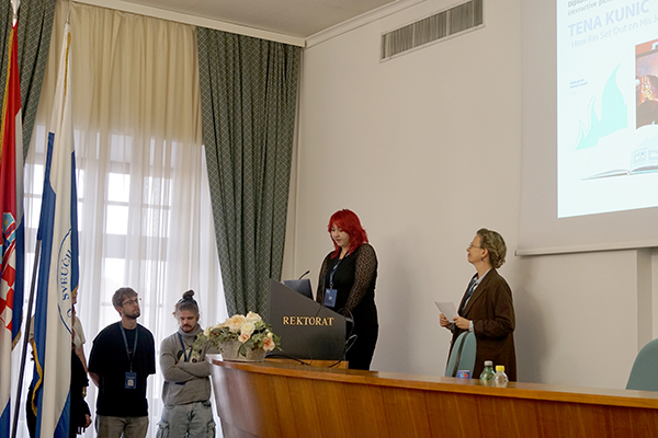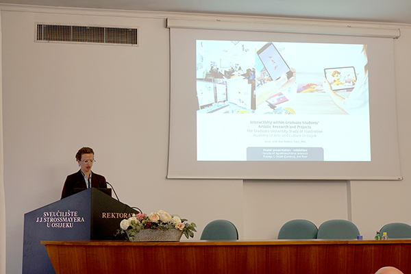 Studenti Diplomskog studija Ilustracije pri Odsjeku za vizualnu i medijsku umjetnost na Akademiji za umjetnost i kulturu u Osijeku te predstojnica Centra za ilustraciju i umjetnost videoigara izv. prof. dr. art. Ana Sladetić Šabić predstavili su interaktivne studentske i diplomske radove na 5. međunarodnoj konferenciji DARIAH‑HR – Digital Humanities & Heritage u Osijeku (22. – 24. 10. 2025.).