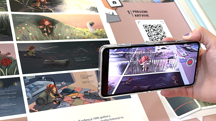 Izložbom prezentiraju se dva praktična djela diplomskih radova u obliku interaktivnih slikovnica u AR proširenoj stvarnosti Tene Kunić i Sarah Lukas Kostolanji, dva završena studentska projekta slikovnica „Više se ne bojim Babaroge“ i „GLAZBENA TApaJNApa“ na kolegiju „Oblikovanje knjige i slikovnice“ i rješenja logotipa mobilne aplikacije DARIAH Assitant na kolegiju „Suvremene grafičke tehnike II“ pod mentorstvom izv.prof.dr.art. Ane Sladetić Šabić.