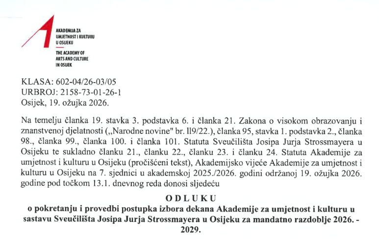 Izbor dekana 2026.–2029. Posted on 20/03/202620/03/2026 TMarijanPosted in Obavijesti Imenovanje izbornog povjerenstva izbor dekana 2026-2029 Pokretanje postupka izbora dekana 2026-2029 Podijeli...