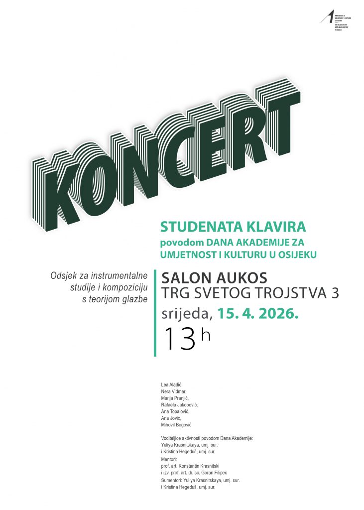 NAJAVA: Koncert studenata klavira na Danu AUKOS-a (15. 4. 2026.) Posted on 14/04/2026 Ivana PušićPosted in instrumentalne_obavijesti PLAKAT LETAK Podijeli...