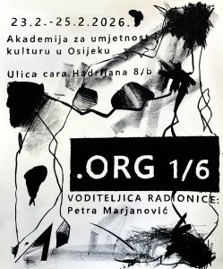Od 23. do 25. veljače 2026. na Akademiji za umjetnost i kulturu u Osijeku održat će se .ORG 1/6 studentska radionica posvećena osnovama plošnog tiska, odnosno litografije, za studente i studentice treće godine preddiplomskog studija AUKOS-a.