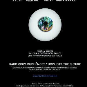Obradovala nas je uspješna suradnja s Projektom Diplomskog sveučilišnog studija ilustracije s Odsjeka za vizualne i medijske umjetnosti Akademije za umjetnost i kulturu u Osijeku pokrenutim pod naslovom “Kako vidim budućnost”, a preuzeli smo ga kao temu našeg natječaja. Prema riječima voditelja projekta, izv.prof.art. Stanislava Marijanovića činjenica je da mladi nasljeđuju svijet koji se nalazi u problematičnom stanju pun nepoznatih izazova, što uključuju radikalne klimatske promjene, eksploataciju prirodnih resursa, globalno naoružavanje i migracije, te eroziju temeljnih humanističkih vrijednosti. Studenti uključenih umjetničkih akademija iz Hrvatske i inozemstva putem vizualnog umjetničkog medija i prema osobnome senzibilitetu i mašti izrazili su viđenje predložene teme, a Akademija za umjetnost i kulturu razvijat će ga dalje, u Osijeku.
