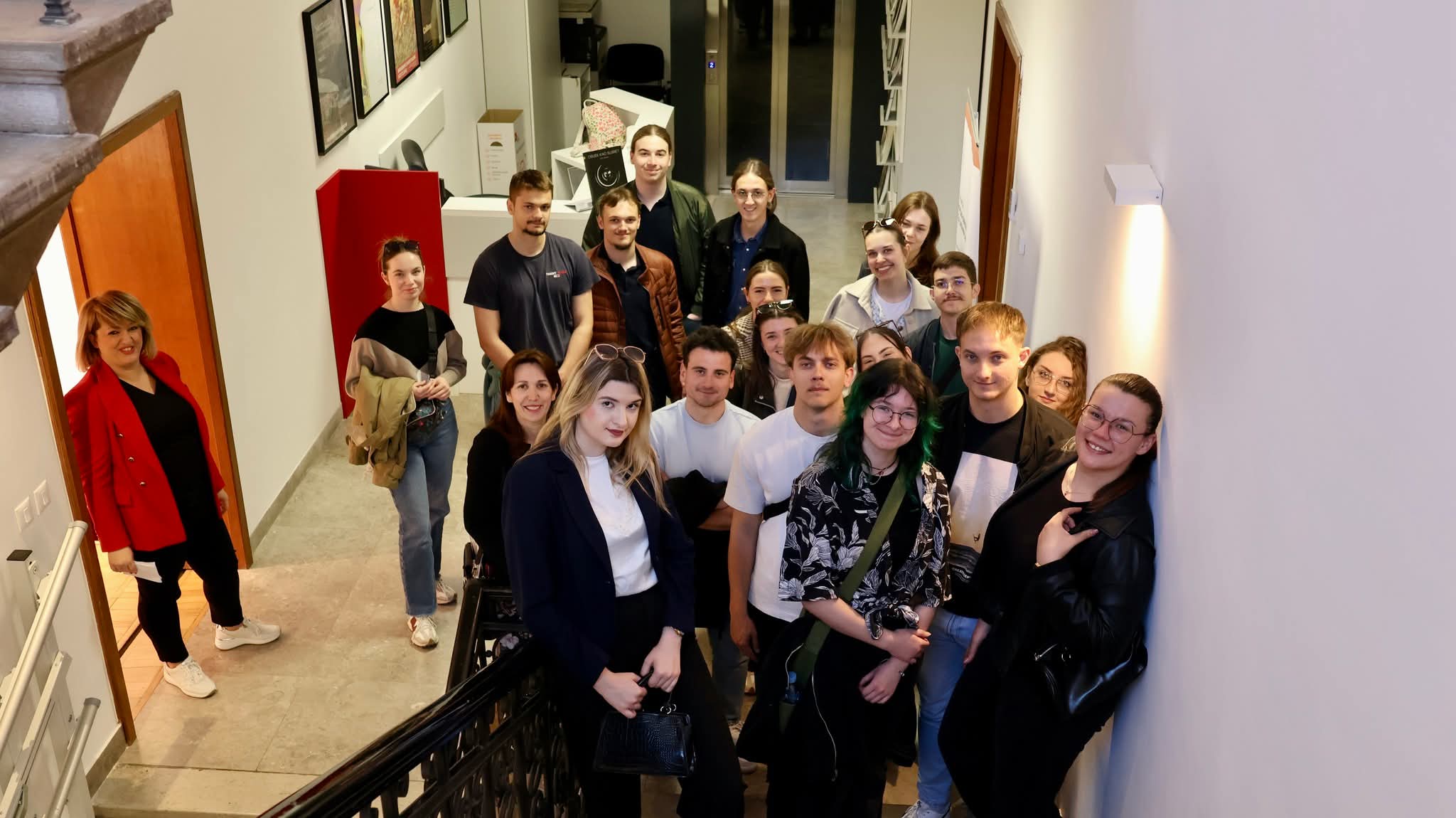 Dana 22. travnja 2026. izv. prof. dr.sc. Marta Borić Cvenić vodila je studente 1. godine dipl. studija u okviru kolegija Razvoj organizacija u kulturi i kreativnim industrijama na terensku nastavu i to u Muzej likovnih umjetnosti u Osijeku i u Javnu ustanovu Županijsku razvojnu agenciju Osječko-baranjske županije. Razlog posjeta muzeju je bio predstavljanje EU projekta „Energetska obnova zgrade Muzeja likovnih umjetnosti“ (projekt proveden u okviru Nacionalnog plana oporavka i otpornosti/Mehanizam za oporavak i otpornost). O samoj provedbi, aktivnostima i rezultatima projekta govorila je Darija Petric, voditeljica projekta. Također, studenti su posjetili i izložbu koja je trenutno u Muzeju likovnih umjetnosti „Osijek kao susret – Lica grada – autora Domagoja i Marina Topića“ koju je predstavio viši kustos Ivan Roth.