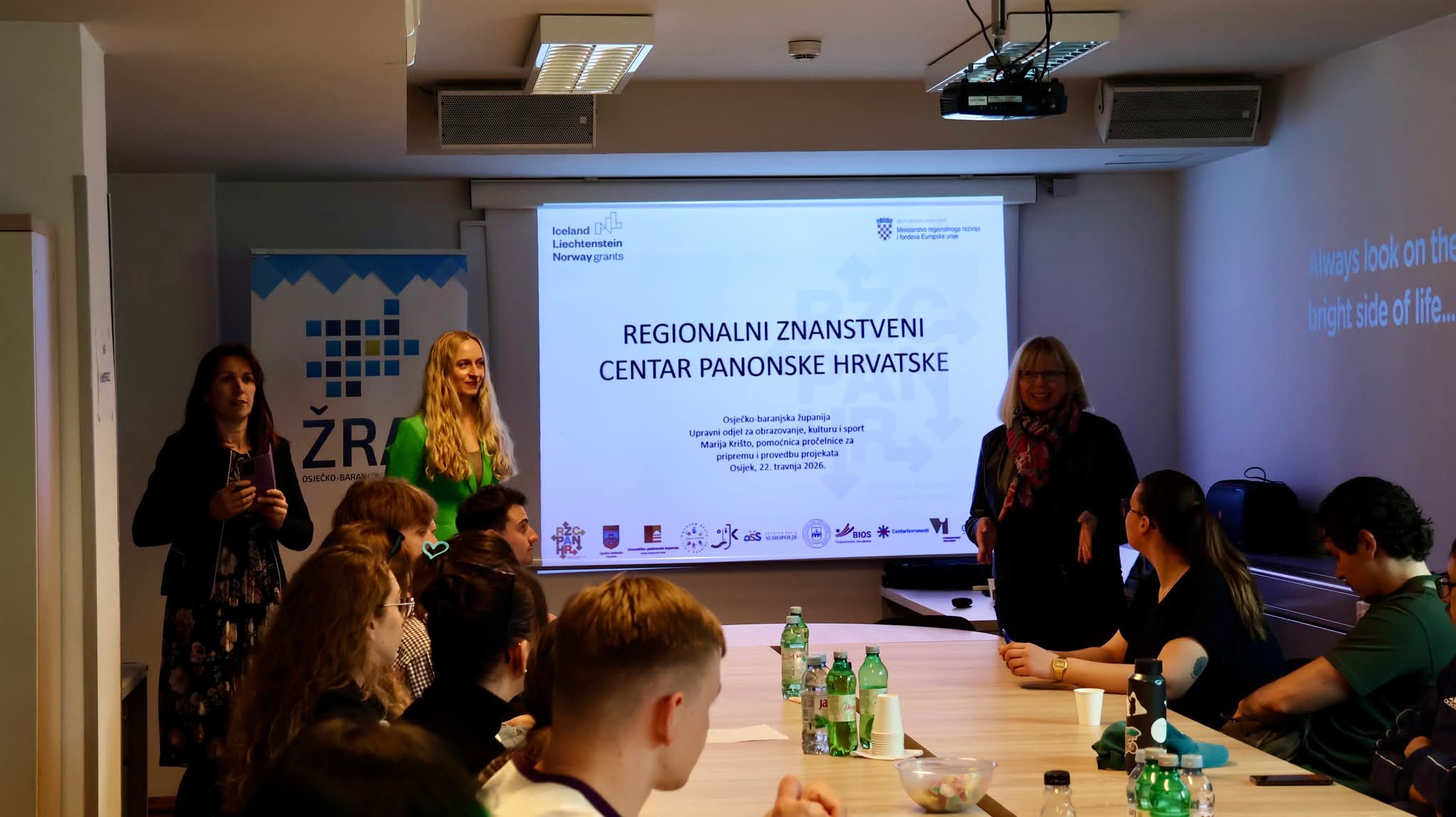 - „Regionalni znanstveni centar Panonske Hrvatske“ financiran iz Financijskog mehanizma Europskog gospodarskog prostora i Kraljevine Norveške kojega je predstavila gđa. Marija Krišto, pomoćnica pročelnice Upravnog odjela za pripremu i provedbu projekata u Upravnom odjelu za obrazovanje, kulturu i sport Osječko-baranjske županije