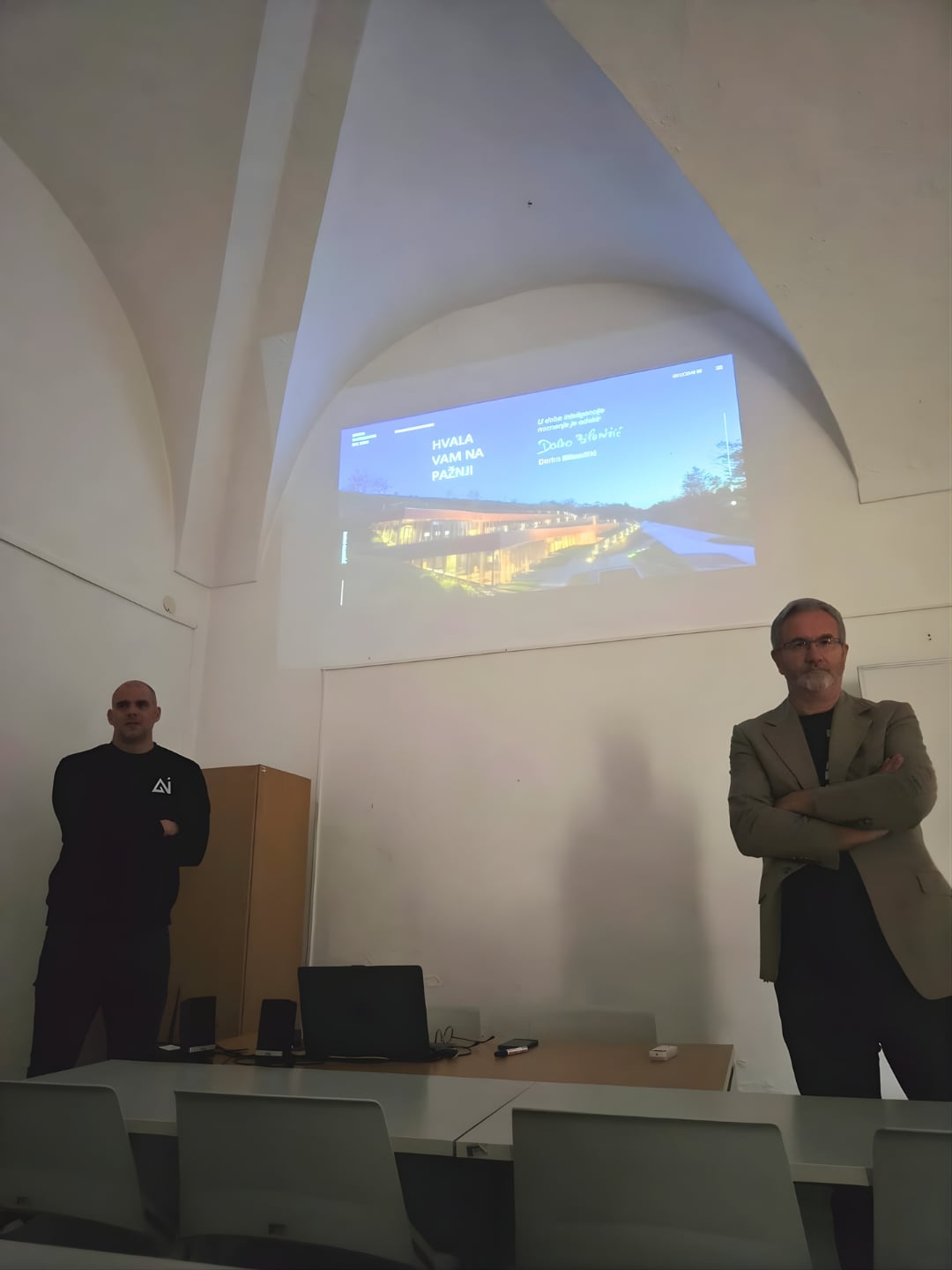 Prvo je Darko Bilandžić, voditelj marketinga Muzeja vučedolske kulture, 20. studenoga 2025. održao gostujuće predavanje na Akademiji na temu “Xr & AI u kulturi”, u okviru kojega se osvrnuo na primjenu novih medija i novih tehnologija u predstavljanju i promociji umjetnosti i kulture. Nakon toga su studenti 1. godine diplomskoga studija na Odsjeku za kulturu, medije i menadžment AUKOS-a dobili praktičan zadatak da, podijeljeni u tročlane skupine, prema zadanim uputama i smjernicama te pomoću različitih suvremenih alata umjetne inteligencije (AI), osmisle i kreiraju kratke AI video/slikovne priče o jednom dijelu života Vučedolske kulture. Cilj je bio kreirati digitalne sadržaje koji su pogodni za muzejske edukacije i objave na društvenim mrežama Muzeja.